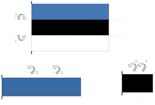 The Estonian Scout Association published a guideline on how the national flag is folded for storage. The national flag is held flat; the white stripe is folded over the black first. The blue is folded over next, so where the step should only allow you to see the blue on top. The flag is folded from right to left twice from the fly end. After this, the folded flag should only allow you to see the black color. This step is repeated twice, then it is placed into a case or bag for storage.