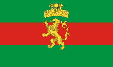 A green-red-green horizontal triband with in the center a golden lion under a golden crown. This flag is seen at https://www.facebook.com/groups/flagsoftheworld where the chieftain is seen at an event in Spain. Francisco Manuel García sent a good image of the emblem, which I used to make the image above.