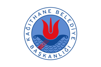 The flag of Kağıthane (photo, photo), also used vertically (photo) is white with the municipality's emblem. "Belediye Başkanlığı" means "Municipality Presidency".