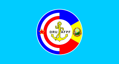 Dunke further notes that the flag would have been replaced in 1941 during the WWII with a German and Romanian flag one over the other, and reintroduced in 1945 and used until 1953. At that year a new Danube agreement was made and the Romanian and Yugoslav ships of the Administration hoisted a new flag, of light blue with a disk composed of the Yugoslav and the Romanian tricolor , the former with the star and the latter with the coat of arms, surrounding a white disk with a golden anchor between initials in Cyrillic and Latin script. Dumke does not give those letters in the text and is not clear what they would stand for (probably for the Romanian and Serbian names of the administration), but show them in the illustration as "DRU" and "AFPF". Now, I suspect the first initials would be in Cyrillic and thus