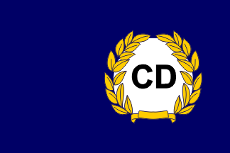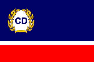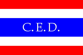 The flag shown in Flaggenbuch [neu92] (1939) is horizontally divided red-white-blue-white-red (1:1:2:1:1) with the white letters "C.E.D." in the blue stripe.