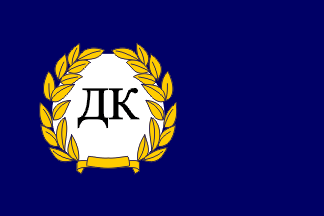 The alternative flag of the Commission is a dark blue flag with the Commission emblem next to the hoist. Since the obverse of the flag is shown with Cyrillic initials, by analogy with the main flag of the Commission, the reverse of the flag might have Latin initials.
