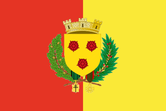 The coat of arms of Grenoble is made of three red roses (2:1) on a yellow field