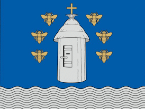"Newly created coat of arms, flags, and seal of Aviliai. This coat of arms belongs to the group of canting arms. The charge is a beehive, associated with the name of the area and Lake Avilys located here. Lithuanian word avilys stands for a beehive and the word aviliai is a plural form. The golden cross at the top of the wooden beehive reflects the old chapel that once stood in the area, the former Piarist monastery, and the Church of the Exaltation of the Holy Cross, which still stands today. The cross also bears witness to the Giedrai?iai family. For a long time, the area of Aviliai was owned by the Giedraitis dukes, even in the 18th century. Many members of this family were bishops, including the blessed Mykolas Giedraitis. This symbol would also commemorate other distinguished personalities who have contributed to the town: Alfonsas Kadžius, a priest who served in Aviliai from 1974 to 1999, who was a polyglot, translator, and researcher; as well as priests from the beginning of the 21st century: Remigijus Kavaliauskas, Stasys Tamulionis, and Vytautas Dagelis. Bees are a symbol of diligence, creativity, and friendship. In the Christian worldview, bees were also considered a symbol of purity and moderation. Medieval bestiaries wrote about bees that, although weak in strength, they are strong in wisdom and love of virtue. Argent symbolizes wealth, integrity, purity, and the lake that flows in the Aviliai, while Azure symbolizes loyalty, divine wisdom, constancy, and honesty. The artist for the symbols of Aviliai was Arvydas Každailis."