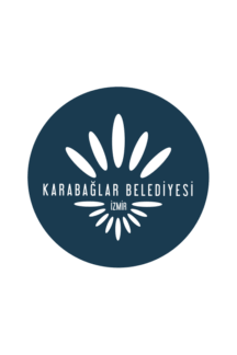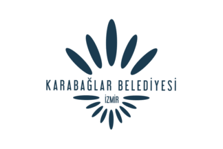 The flag of Karabağlar (photo, photo), also used vertically (photo), is white with the municipality's emblem. The vertical flag is also used with a blue background (photo). "Belediyesi" means "Municipality".