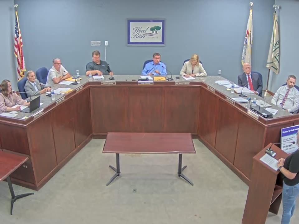 the banks of the Wood River. The flag was adopted on May 12, 1997.