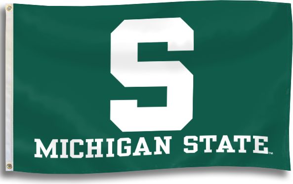 Michigan State University's most popular logo flag is this style "S" flag. Such a flag is (or has been) pretty popular among many universities in the US whose middle name is "State". For example, North Carolina State [University] once used this same flag except the flag was red instead of green. I have also seen the occasional rare maroon Mississippi State flag with the white letter "S".