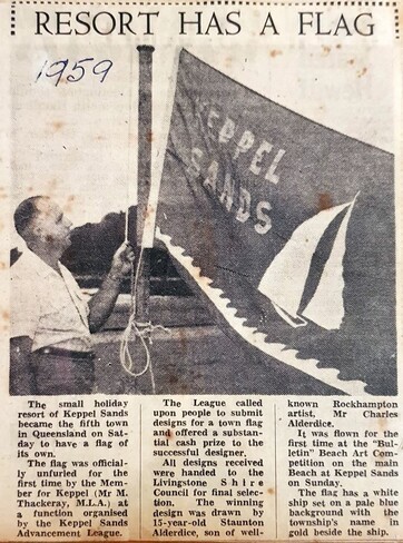 cut-off from 1959 with short text and black & white photo of the town flag. I