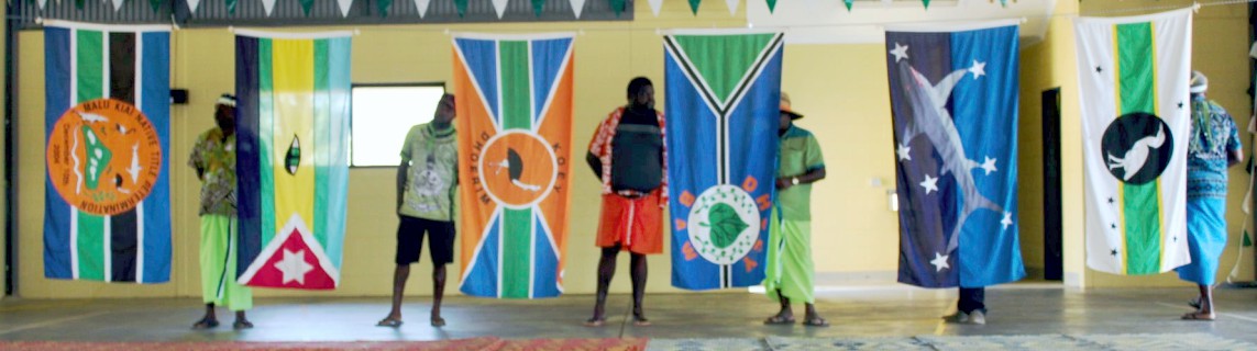 This image was described as ‘Flag display of different clan groups and the Ma’lu Ki’ai Native Title Determination Flag’.