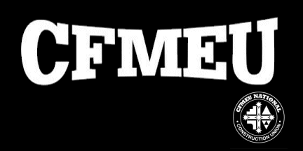 CFMEU in large white letters, compressed in the middle, centered on a black