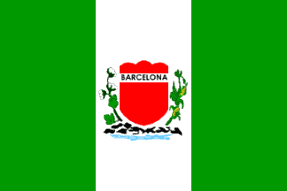 white fess in chief inscribed with the name Barcelona in black letters. The