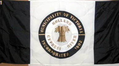 The flag of the Rural Municipality of Victoria, Manitoba, consists of three
