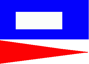 was a swallowtail pennant, vertically divided into white and blue. A red