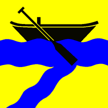 Or a bar wavy Azure in chief a boat with an oar Sable garnished of the First and in base a bendlet