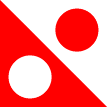 Per bend Argent and Gules two Roundels in bend sinister counterchanged.