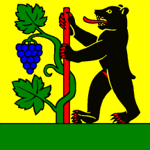 Or a Vine Vert fructed Azure issuant from base of the second and twined around a stake Gules that is
