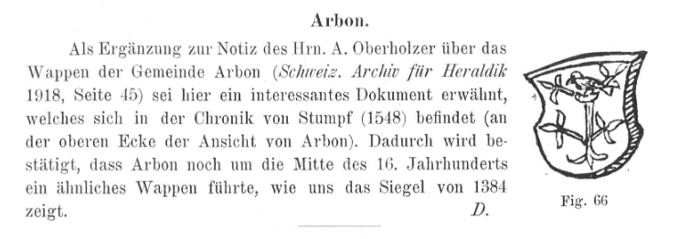 The Arbon coat of arms was first documented in the 14th century and has been supplemented over the