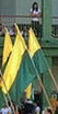 A variant (earlier) flag is seen displaying the CoA of the University. Picture taken at a Campus event, most likely in 2003