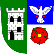Flag: a green hoist charged with a white castle-tower; the fly is blue