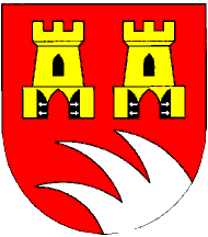 Flagdescription: red field; in top hoist two yellow turrets; in bottom