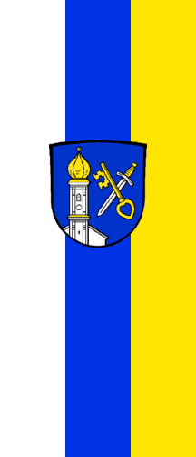 p>The Gemeinde Kirchberg adopted arms on 28th September 1982, blazon: Azure, dexter a rural church issuant Argent domed onion-shaped Or; sinister a key Or and a sword point downwards proper, pommel and hilt Or in saltire. At the same time a flag of white-blue-yellow was adopted. It is used with the arms.