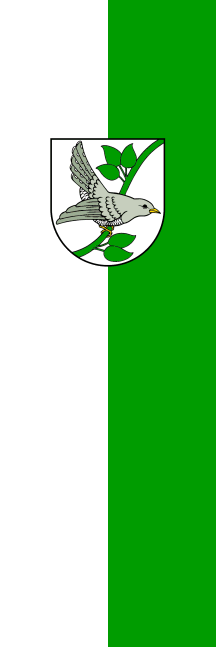 It is a white - green vertical bicolour. The coat of arms is shifted to the top.