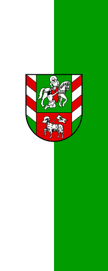 It is a white-green vertical bicolour. The coat of arms is shifted towards the top.