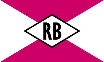 The company was located in Hamburg. The flag (see left imageabove) is divided per saltire into red and white. In the centre is a white lozenge, fimbriated black, with a black inscription “RB”.