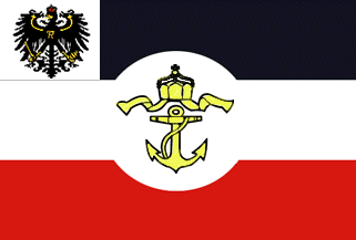 In the black-white-red with a white circular cut-out in the back and red stripe; in the white central disk, a yellow fouled anchor crowned with the Imperial crown in gold. A white square in the upper hoist filling the whole of the height of the black stripe. In the square the Prussian eagle. Fixed 24 January 1894, adopted 5 February 1895, and abandoned by 1918. Illustrated in Crampton 1990 p. 42, Meyers Konversations-Lexikon 1912 vol. 4, National Geographic 1917 p. 367, nos. 999 and 1003.