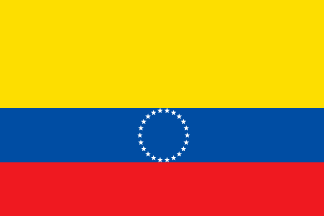 This flag is according to law dated 5 December 1900 which states that the national flag, when is hoisted in an Ayuntamiento (Local Council Headquarters) won't bear the arms but a ring with stars (one star for each province, then there's several versions until the current 22 stars). "Banderas" show the version with 12 stars occupying 5/7 of the hight. Jorge Hurtado sent me later the version with 21 stars that are very small, all within the blue stripe (Hurtado drew this last flag in proportion 2:3 but I believe that the official proportions must be 1:2).