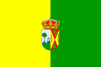 Flag: Rectangular panel, in proportions 2:3, vertically divided in the middle, yellow at hoist and green at fly, charged in the center with the crowned coat of arms of the municipality.
