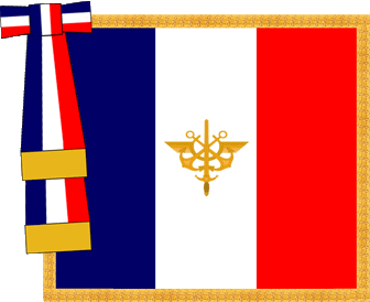 Minister of Armed Forces has a pennant without fringe, with in its white part the emblem of the French defense staff (certified G825), 10 cm large, embroidered in gold and with a golden fringe of 2,4 cm.