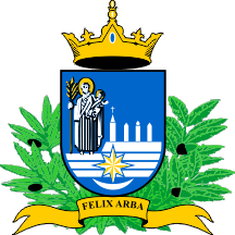 around the wreath, and bearing the inscription "Felix Arba" in black letters on the central bottom loop.