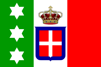 Capitani di vascello - National flag ending in a swallowtail, the red stripe being twice as large (measured at the horizontal edges) as the others.
