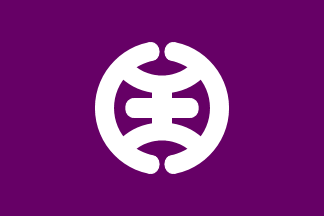 Hachioji city adopted its emblem on 22 December 1917. flag proportion: 2:3. colour of field: purple. colour of emblem: white diameter of emblem: 3/5 flag height; a stylized kanji Hachioji 八丈