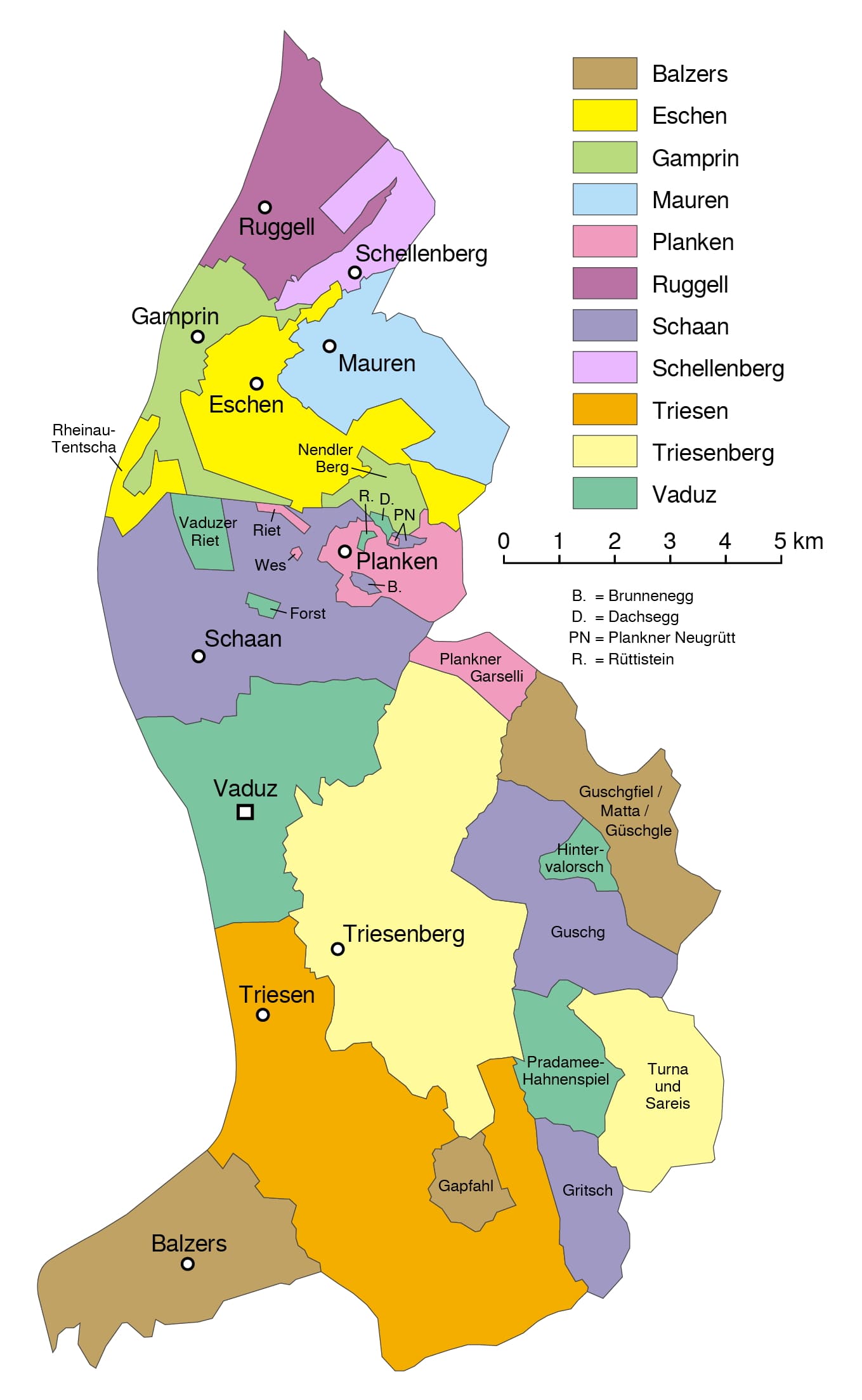 Liechtenstein and its division in communes (source).