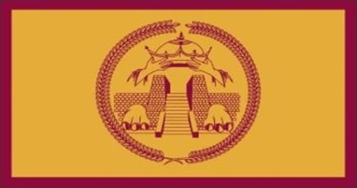 image located by Valentin Poposki, 23 December 2025The flag is orange, bordered maroon with the emblem in the center.