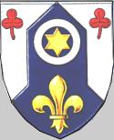 In the base of the shield is a golden fleur-de-lis, derived from the arms