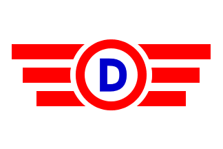 The logo consists of a blue initial ‘D’ inside a red ring, plus three