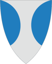 Blazon: I sølv to buede blå flanker. In English: Argent flanks azure.