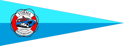 The flag of Vorma Båtforening from Sundet in Eidsvoll Municipality is a pennant divided horizontally light blue over dark blue with the badge.