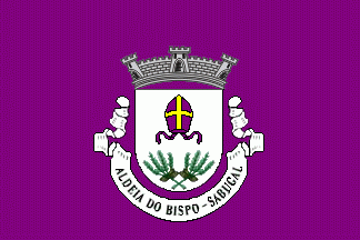 Shield Argent, a mitre Purpure scarved of the Same and garnished Or, in base two bunches of four ears of grain Vert tied Purpure. Mural crown Argent with three visible towers and white scroll with inscription in black initials "ALDEIA DO BISPO - SABUGAL"