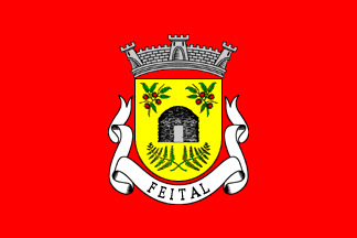 Mural crown Argent with three visible towers (village rank) and white scroll reading in black upper case serifed letters "FEITAL".