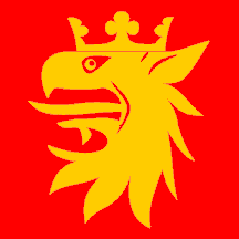 "Region Skåne" is a new regional organization that has been operating on a trial basis since 1 January 1999. The regional organization, headed by an elected Regional Assembly, was delegated greater responsibilities than the traditional county councils. The Regional Assembly of the Scania Region adopted arms and flag on 9 February 1999: On a field of blue a yellow crowned griffin head issuing from the bottom edge. The arms and flag were prepared by the heraldist Christer Bökwall.