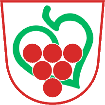 The coat of arms is made of typical elements representing the identification of the municipality on wider, state level. A stylized grape represents vine growing as the most important activity in the municipality, and therefore the grape is in the center of the coat of arms.