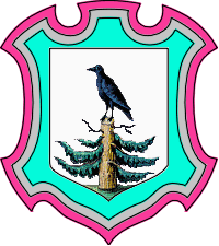 crow bird (in Slovene, vrana), as "Argent a crow stantant on top of a couped juniper tree issuant from base all proper".