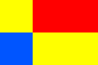 My visit on www.kosice-region.sk today was succesful. All three symbols (Arms, Flag and seal) of region are already shown  there "in full splendour". According to "Vseobecne závazné nariadenie On Symbols of Košický Samospravny Kraj Use Proposal ("Generally Mandatory Regulation" - it is name for Regional and Municipal Representations Acts in "official" Slovak) the flag shall be quartered of yellow, red, blue and yellow, while vertical dividing line is in 1/3 of the fields length. No Arms, no  swallowtails. The field is 120 high and 160 cm long. Above mentioned Regional Act (Vseobecne zavazne nariadenie) Nr.1/2002 will be on program next week (9th of May 2002). I only wonder, if these symbols are allready official - we know, that supreme heraldic authority in Slovakia is Ministry of Intern, not Selfgovernments.