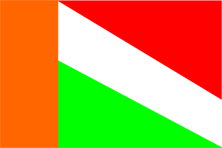 separated by white hoistdiagonal stripe. The flag has green