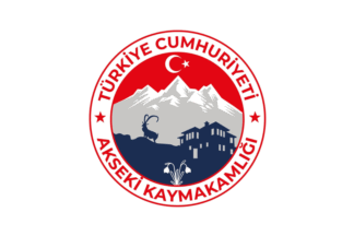The flag of Akseki is white with the municipality's emblem in the middle. "Belediyesi" means "Municipality".