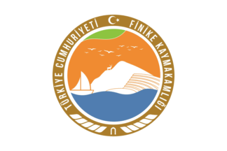The flag of Finike, used either horizontally (photo, photo) or vertically, is white with the municipality's emblem.